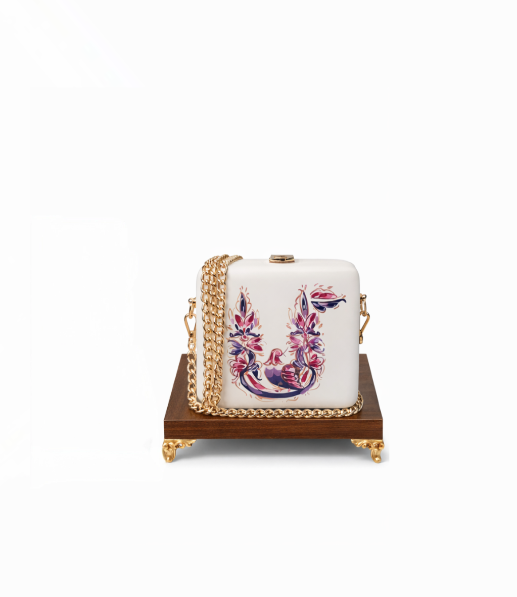 Սպիտակ փայտյա պայուսակ՝ ժամանակակից և մինիմալիստական դիզայնով։ Նրբաճաշակ և բազմակողմանի աքսեսուար, որը հեշտությամբ լրացնում է ցանկացած կերպար։
