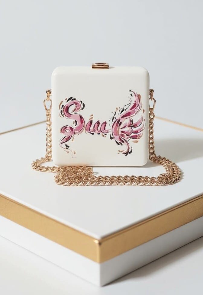 This adorable baby model wooden handbag from MP WooD features a deep purple finish and a sweet hand-painted bunny/labubu character, designed especially for little fashion lovers. Lightweight and compact, it has a smooth rectangular shape, a gold-tone chain strap, and a secure clasp closure. Perfect for special occasions, photo shoots, or as a charming gift for children.