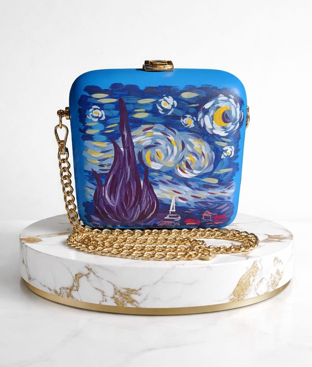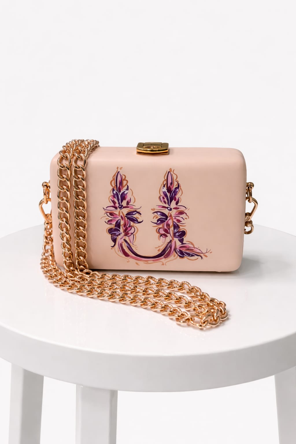 A stylish handmade wooden handbag featuring an elegant artistic design that blends modern fashion with unique craftsmanship. The structured shape, smooth finish, and refined details create a sophisticated accessory perfect for special occasions or everyday elegance. Designed with a secure metal clasp and a delicate chain strap, this bag is both practical and eye-catching — an ideal choice for those who appreciate originality and timeless style.