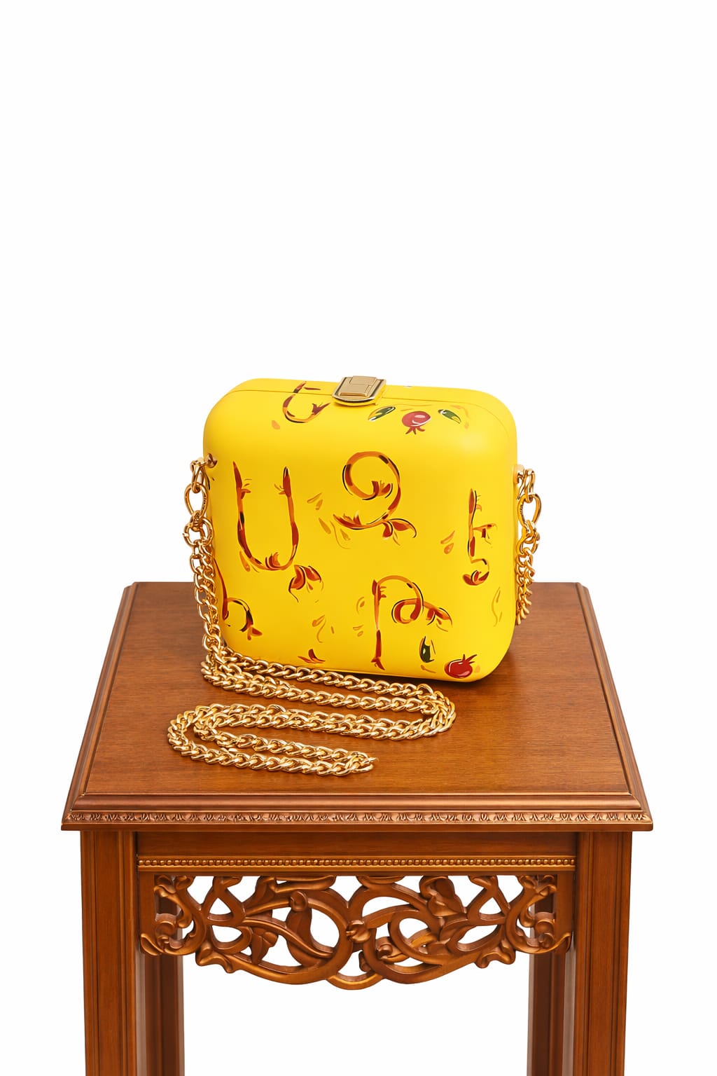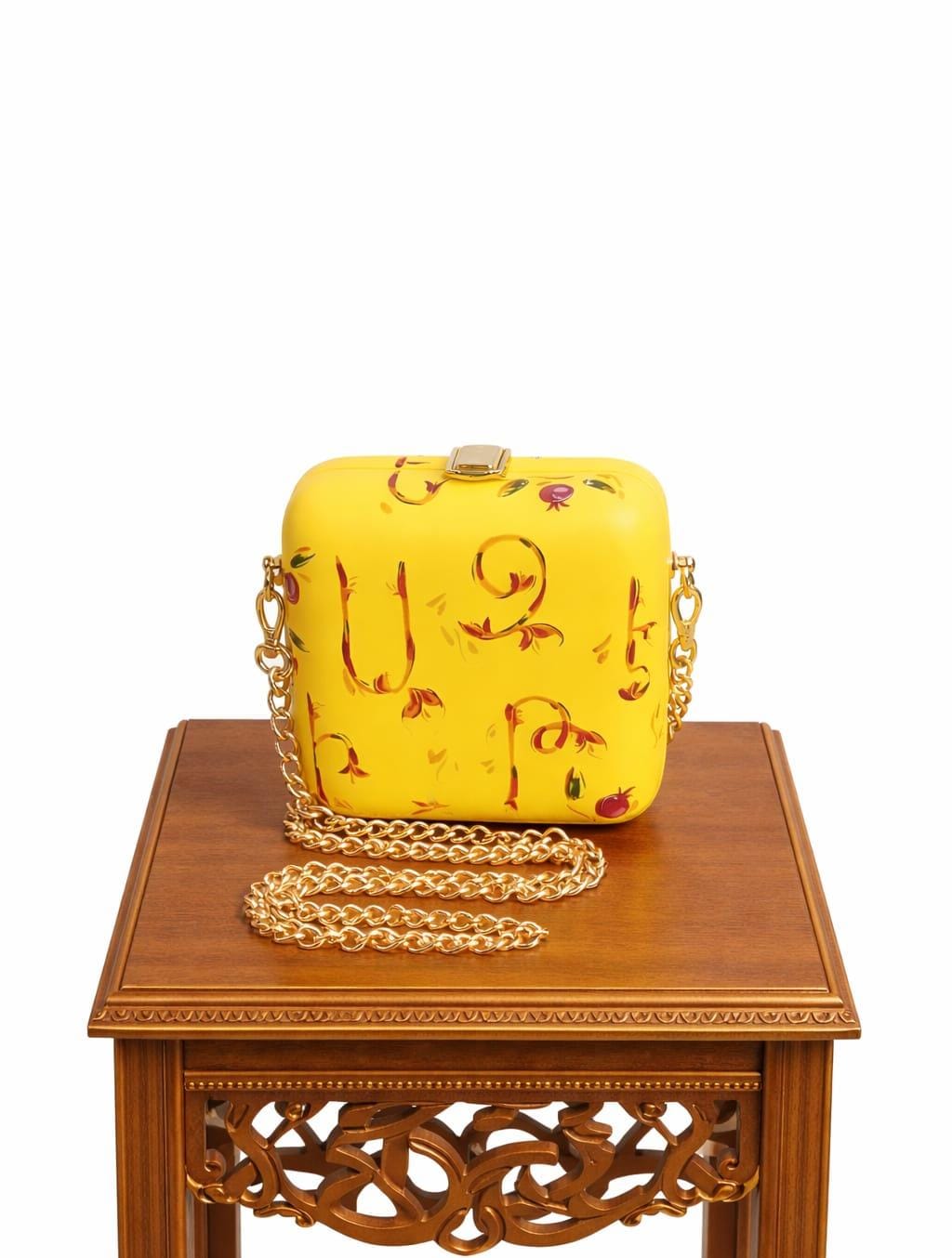 Этот яркий жёлтый клатч — идеальное сочетание выразительности и утончённости. Жёсткая форма с плавными линиями подчёркивает современный стиль, а художественный принт с каллиграфическими элементами придаёт модели особый характер и индивидуальность.Золотая застёжка и металлическая цепочка добавляют роскошный акцент. Клатч прекрасно подойдёт для вечерних мероприятий, торжеств или стильных выходов в свет. Компактный размер позволяет удобно разместить всё необходимое.