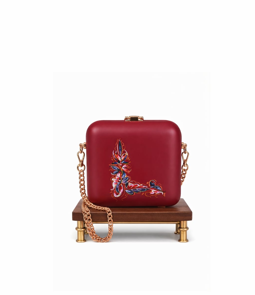 Элегантная бордовая сумочка-клатч создана для женщин, ценящих искусство и утонченный стиль. Гладкая матовая поверхность украшена уникальным ручным рисунком, который придает каждой сумочке индивидуальность. Структурированный квадратный силуэт дополнен золотистой фурнитурой и съемной цепочкой, позволяющей носить сумку как клатч или на плече. Идеально подходит для вечеринок, особых случаев и стильных повседневных образов.