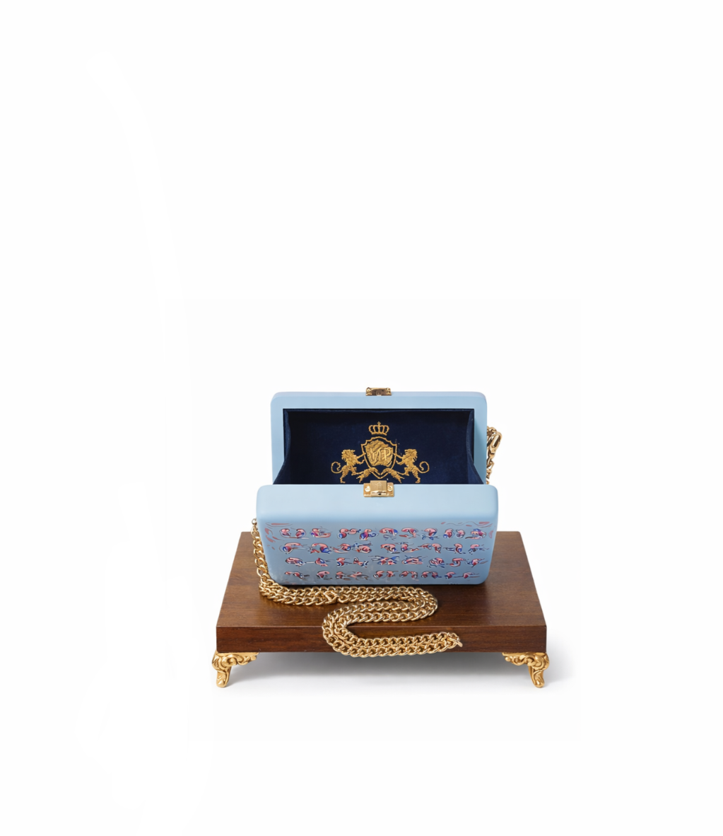 Стильная деревянная сумка нежного голубого оттенка с чёткой формой и аккуратной отделкой. Лёгкая и прочная модель, которая придаёт образу свежесть и женственность.
